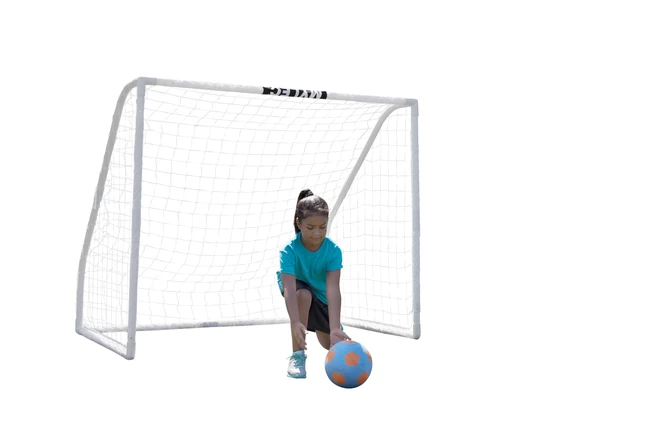 Mylec Portable Soccer Goal featuring a heavy duty 1-5/8 inches of PVC tubing construction has an authentic pro-style design and is ideal for indoors or outdoors. Goal measuring 72 x 60 x 48 inches is impervious to harsh outdoor elements and won’t chip, peel, stain or corrode. Goal with pre-sleeved netting can be assembled within minutes. Sold individually.