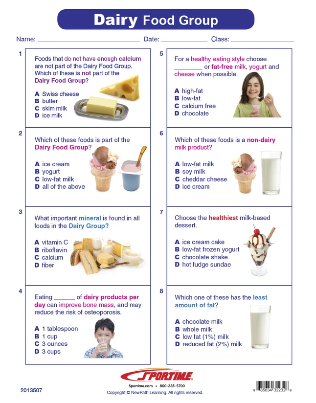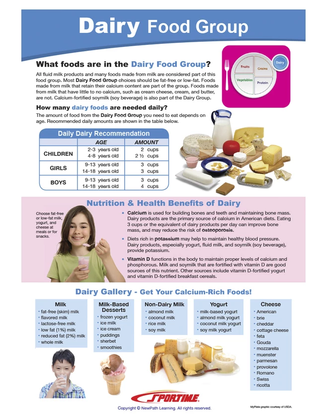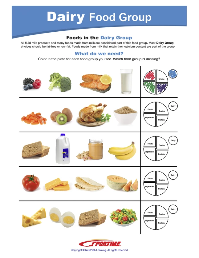 - Dairy food group learning guide is an excellent nutrition education teaching aid to use alone or conjoined with other MyPlate or food-related Sportime Visual Learning Guides (sold separately)