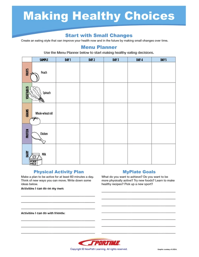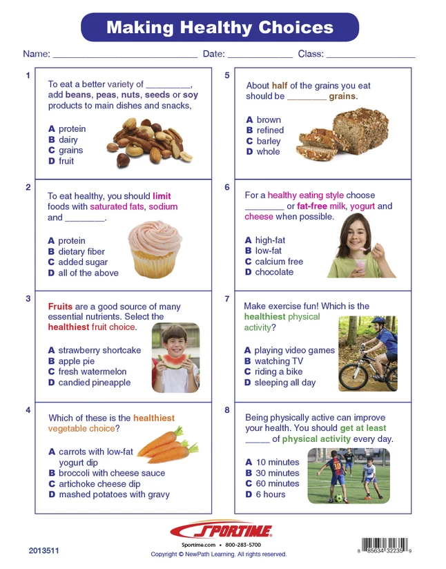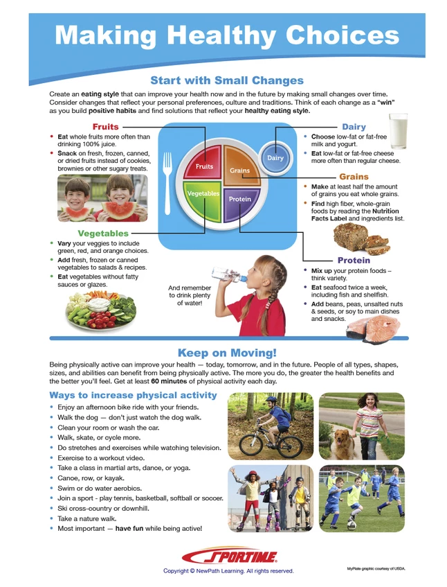 - Healthy choices learning guide is an excellent nutrition education teaching aid to use alone or conjoined with other MyPlate or food-related Sportime Visual Learning Guides (sold separately)