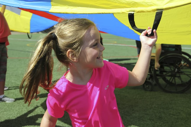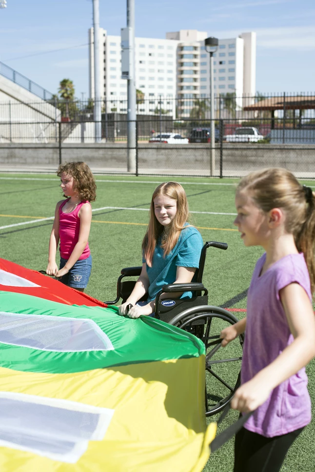 - Firm rope grip handles around perimeter provide up to 22 children with a firm, controlled grip when parachute is in motion