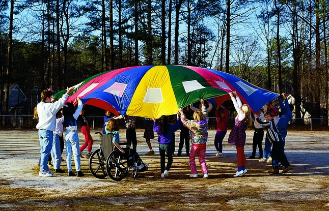 - Hundreds of different games and activities can be used with parachute for building cooperation, teamwork, and various muscle groups