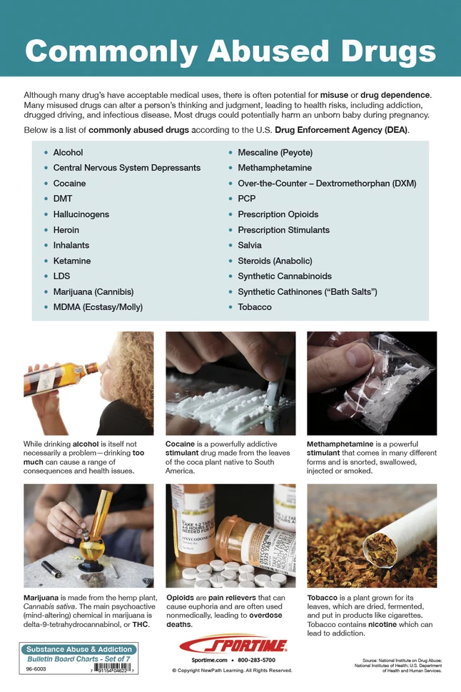 - Double-sided Substance Abuse & Addiction charts make complex facts simple, fun, and easy to understand for Grade 5 to 12 students