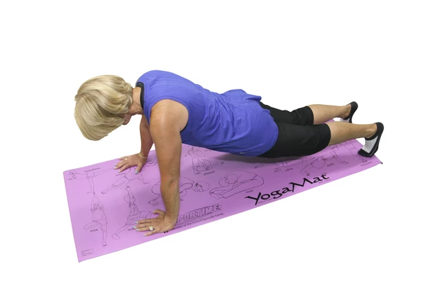 - Yoga mat can serve as full 30-minute exercise session when students hold printed poses for about 2 minutes each