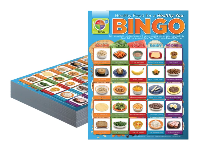 - Bingo for kids gets an entertaining and educational twist with food group graphics