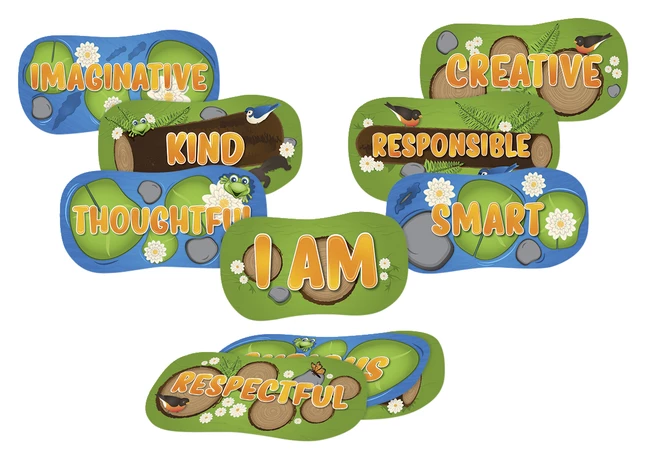 - Adorable and empowering messaged woodland hopscotch decal set is printed on durable 3M Scotchcal vinyl film with a slip-resistant surface