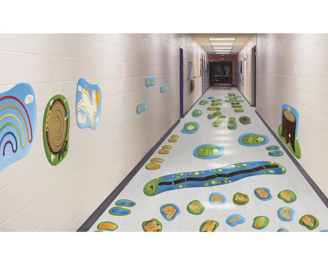 - Adorable woodland graphics on this sensory path and wall decals are printed on durable 3M Scotchcal vinyl film with a slip-resistant surface